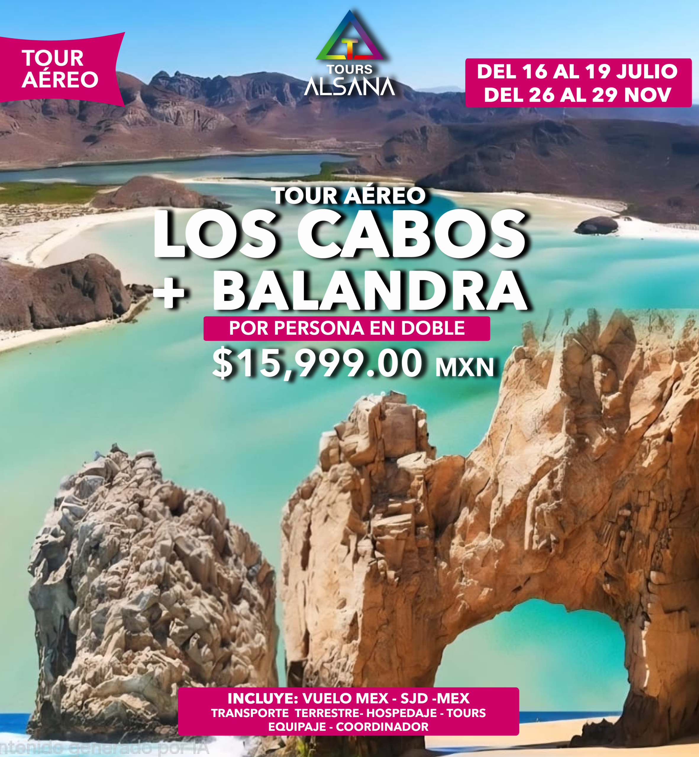 Los Cabos + Balandra + Camellos, 16 al 19 Jul, 26 al 29 de Nov