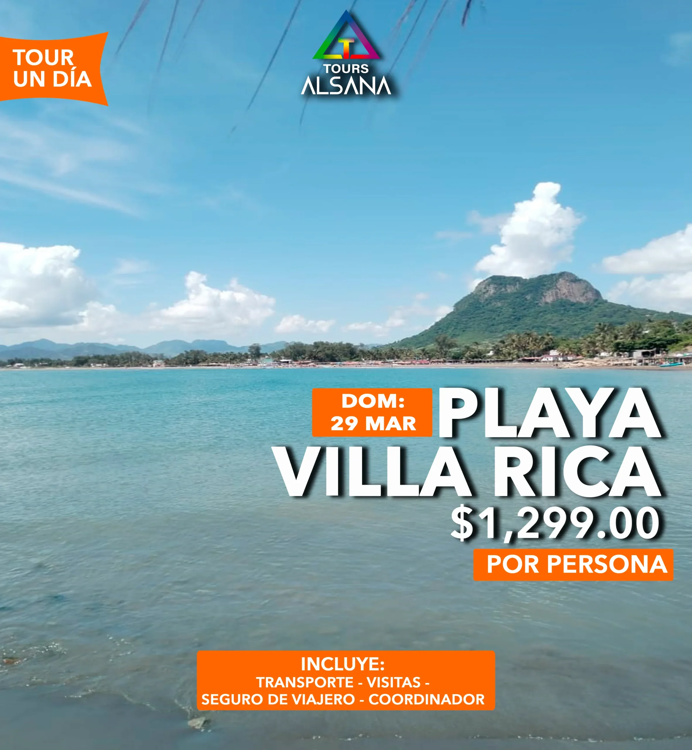 | Transporte viaje redondo en camioneta de turismo por logística del tour | Visita a Playa Villa Rica, día libre en playa. |