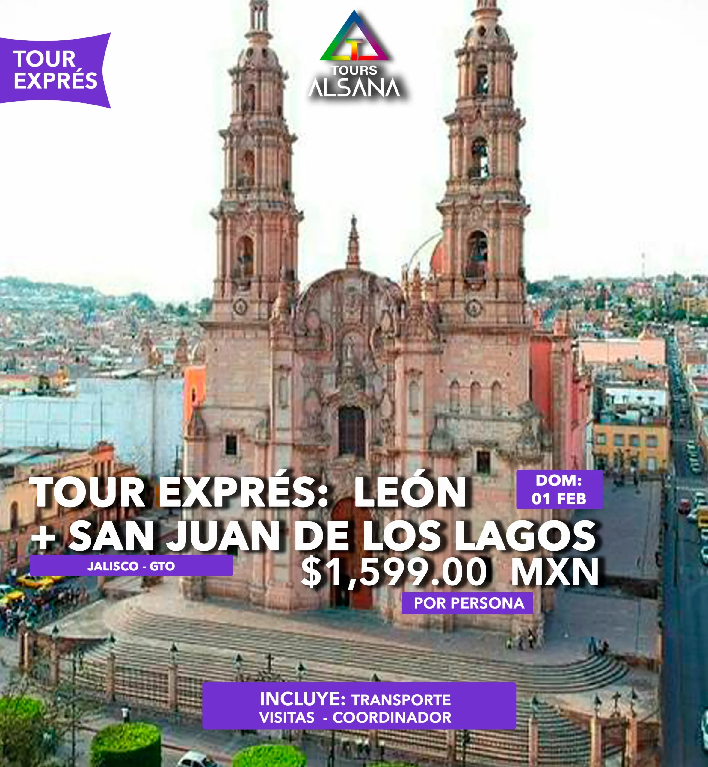 | Transporte redondo en camioneta de turismo. | Visita al templo de San Juan de los Lagos |