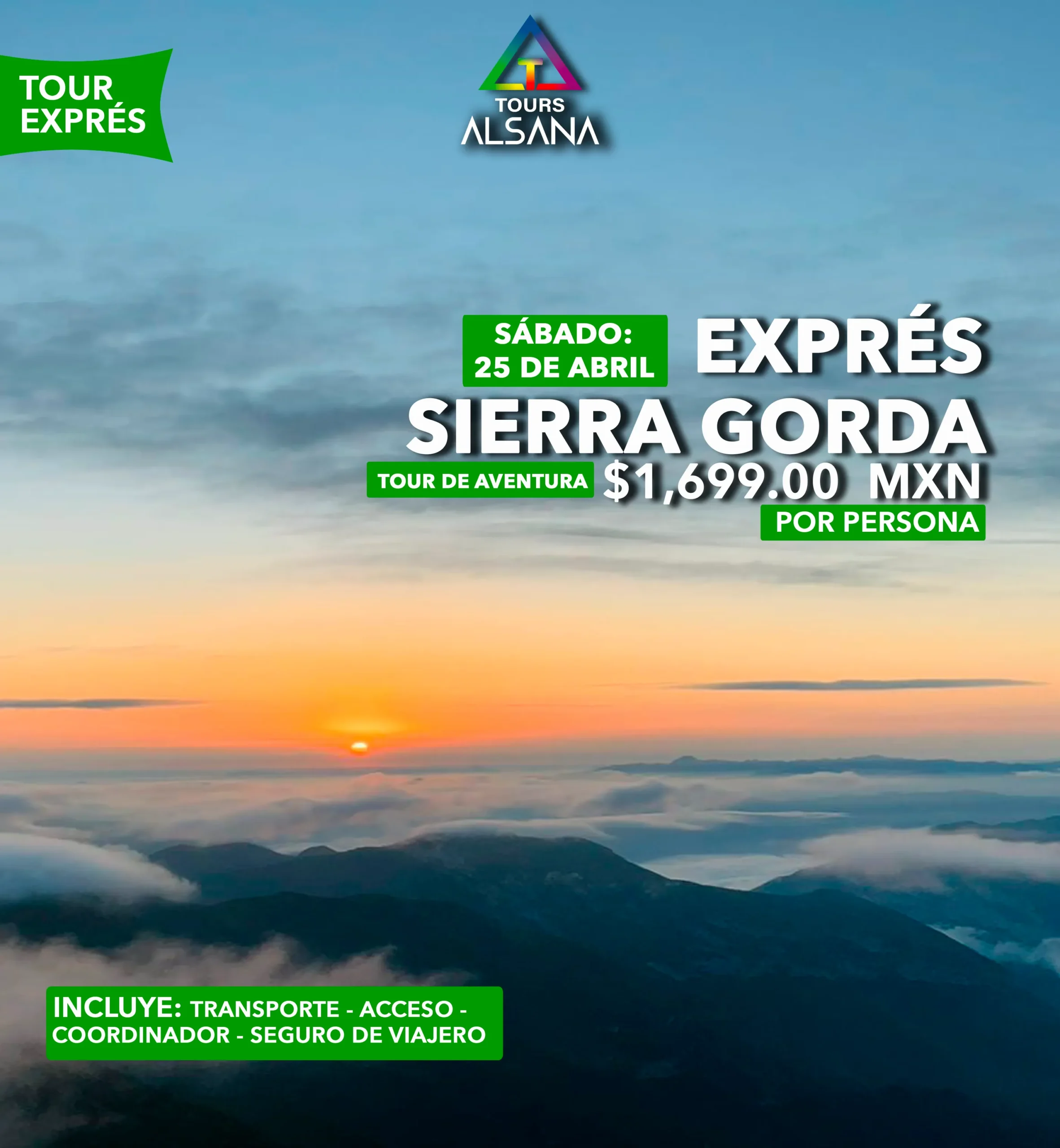| FECHAS DE SALIDA: | Sábado: 25 de Abril (Saliendo Viernes por la noche) |