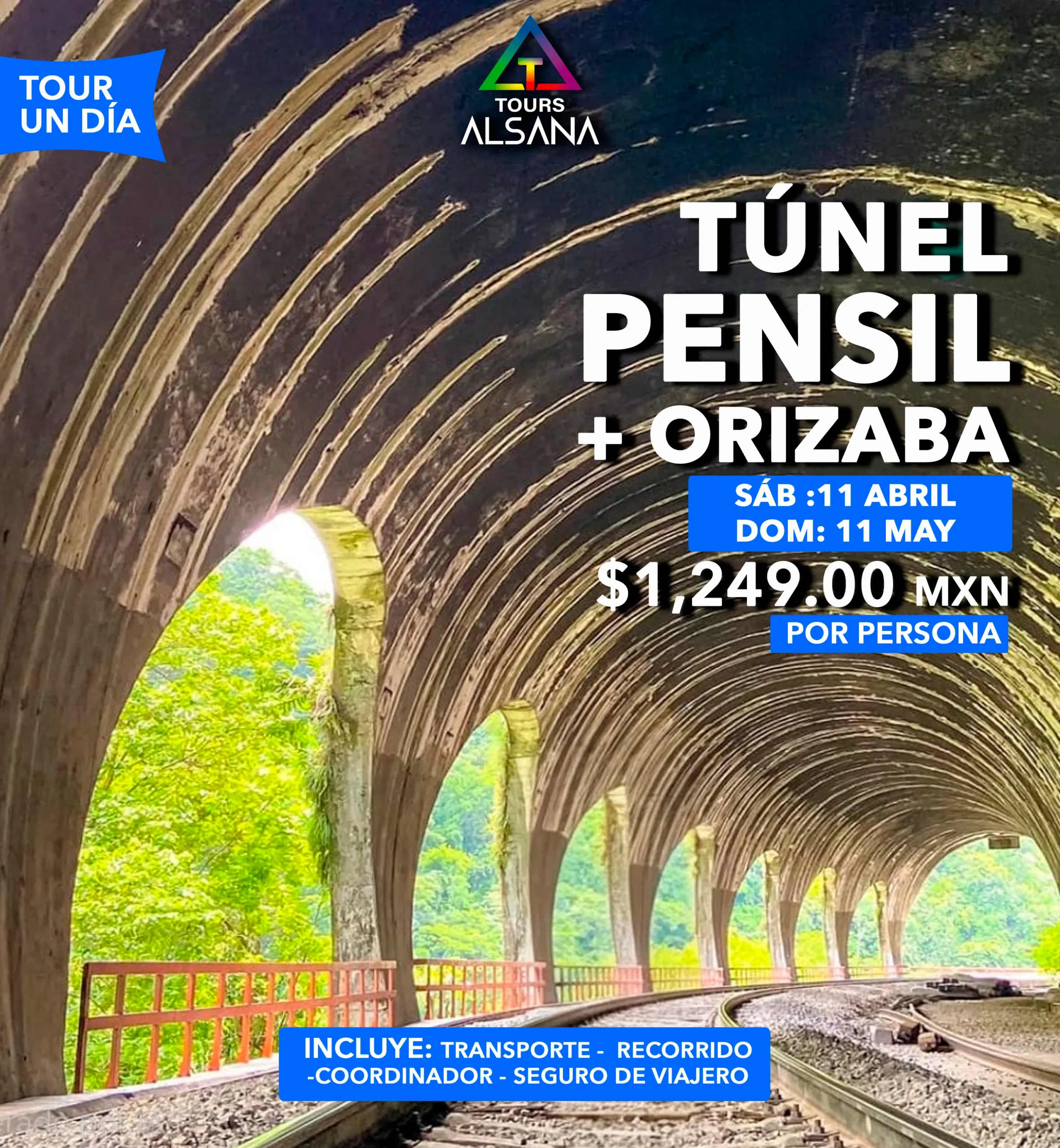 Descubre una experiencia diferente con este tour al Túnel del Pensil en Atoyac y visita a Córdoba, Veracruz, ideal para quienes buscan historia, naturaleza y fotografía. Exploraremos el histórico Túnel del Pensil, una antigua obra ferroviaria rodeada de vegetación y paisajes impresionantes. Después visitaremos el centro histórico de Córdoba, famoso por su arquitectura, parques y ambiente tradicional veracruzano. Este tour de un día desde CDMX es perfecto para viajeros que desean conocer lugares únicos, disfrutar de paisajes naturales y descubrir uno de los sitios históricos más interesantes de Veracruz.